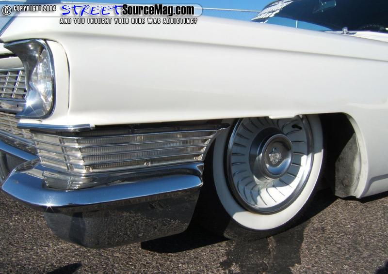 While the process of fixing the exterior was going on, the team attacked the suspension full force. Air suspension was supplied by Fender Bender International in the way of Ride Tech 2500 and 2600 airbags. All plumbed up with ½ in. line and Blitzluft valves and a 6 gallon tank. The car trips down the road of a beautiful set of ’61 Cadillac wheels and hubcaps matched perfectly with 3-inch Coker white walls to keep that classic look.