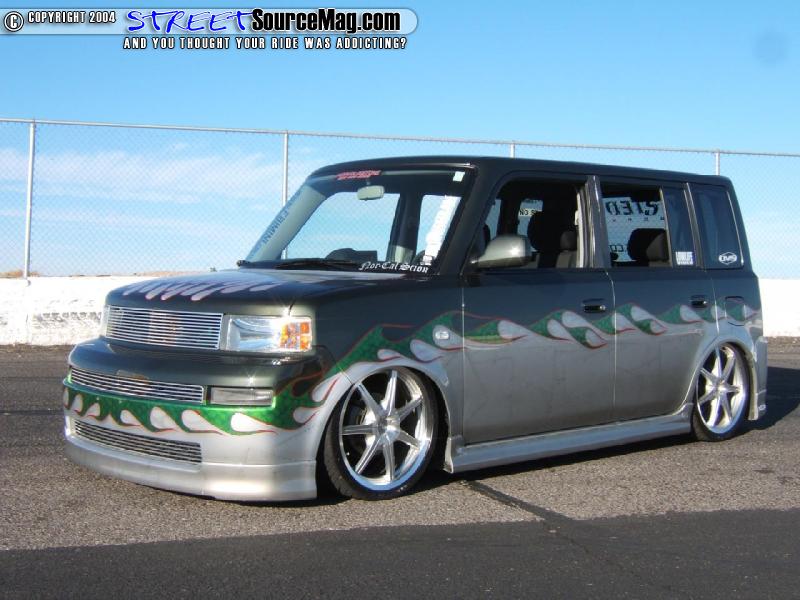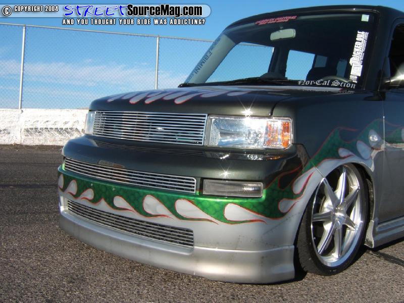 From there, it’s was time for the little box that could to get a face lift. First Phil started with some custom tricks like shaving the rear side markers lights and relocated the exhaust cutout to the middle of the rear bumper. Once that was done, he bolted on a set of Trenz framed perimeter billet grills, bumper grills, and hooking up a carbon fiber hood then it was off for paint. Most people would just hit up their local paint shop to clean their ride up, not Phil, he took his ride to James Cashman of Cashman Customs in Concord, Ca. who is responsible for all the graphics on the Scion.