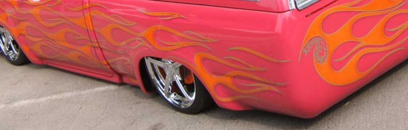 So we will start with the suspension, Joe took the truck to Brent at Kuts R Us in Porterville, Ca and he reworked the suspension in the form of Slam Specialties RS bags all the way around. Up front, he cupped those with a set of AIM drop spindles and to give the front a lowered stance. Out back, he utilized a three link system with KYB shocks to keep this truck as manageable as possible on those long drives to Southern California shows. While the truck was being bagged, Joe decided to take the truck to next level and put a 2 and ½ in. body drop on the truck.
