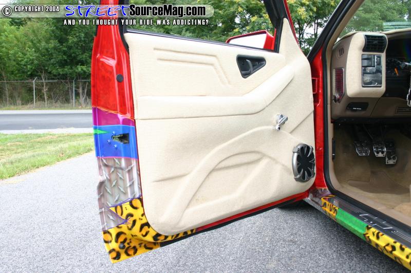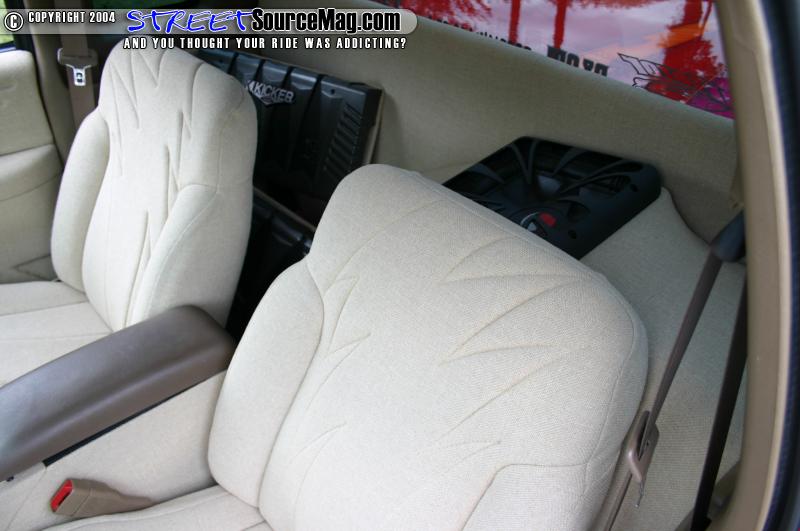 With all that hard work into the exterior of his truck he Charlie knew he would have to be equally involved in his interior. Eric at Craftsman Upholstery wrapped Charles dash, door panels, headliner, and sub enclosures in sand tweed. The seats were also wrapped in tweed with a stitched design, and Eric even moved in to the trunk and built a mount for the air tank and wrapped it in tweed.
