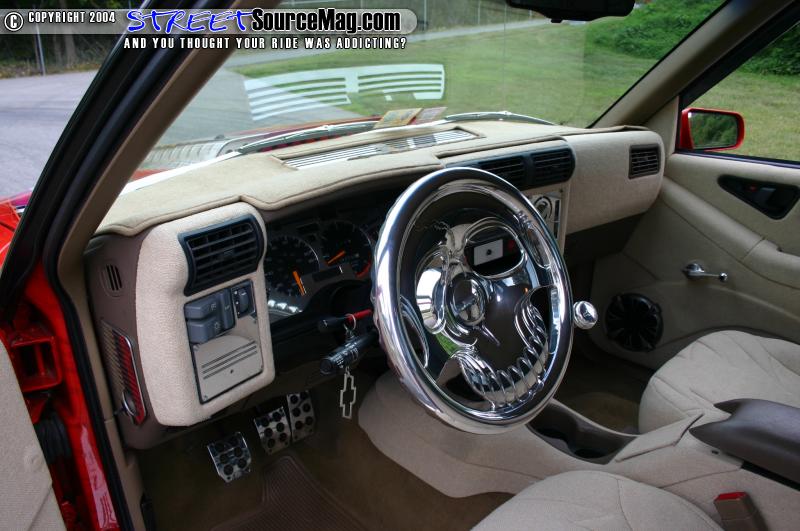 To clean up the interior some more a set of billet dash inserts were installed as well as a Trenz billet skull steering wheel, billet window cranks, billet pedal covers, and a billet shifter with the Chevy symbol on it. Charles I.C.E. includes a Sony head unit, kicker speakers, two Kicker subs, and two Kicker Amps. John Brittle at Sound Solutions in Chantilly, VA performed the stereo installation.