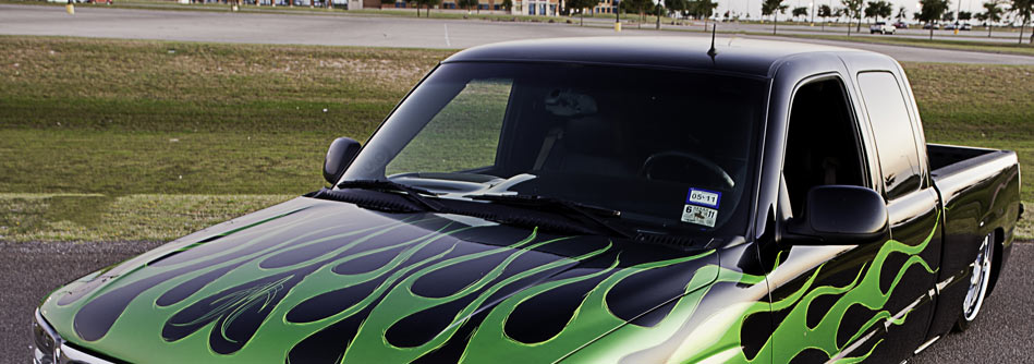 Adam Lovette is no stranger to custom vehicles. Just in the past couple of years, he’s body dropped a 2002 Ford Ranger on twenty twos, and body dropped a Nissan Hardbody that he also stuffed a small block Chevy into it. Getting off on the right foot with his 2001 Chevrolet Sierra, the truck first started off its short four month journey to where it is now by making the 300 mile journey to The Hackshack in Dallas, Texas where their task was to get the truck a little closer to mother earth. While the truck was there, it received a four link out back with Slam Specialties bags on the bar and Fox shocks to keep it nice and smooth. The Hackshack then proceeded to narrow the rear end a total of 6 inches to lay out on the 24x10 inch wheels that they had lined up for it. The last part of the rear was a custom made fuel cell that is located behind the rear axle above the frame rails, so there are no accidental fires or any tragic accidents of that sort. The front end of the truck got the same quality parts and attention as the rear. The front has a set of three inch drop spindles, raised and narrowed upper control arms with Slam Specialties air bags and