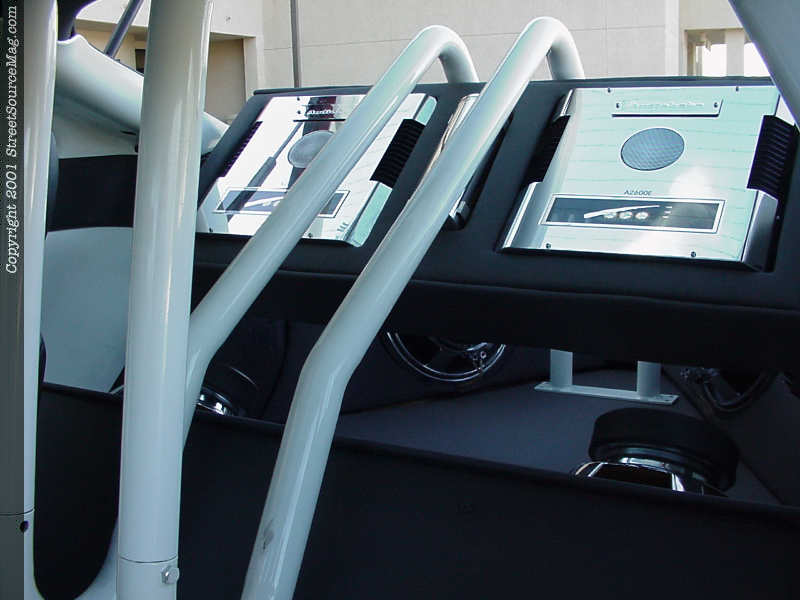 The roll cage painted white, gives the Cougar a custom look with it's 2 ΒΌ-inch tube running throughout the cockpit.
