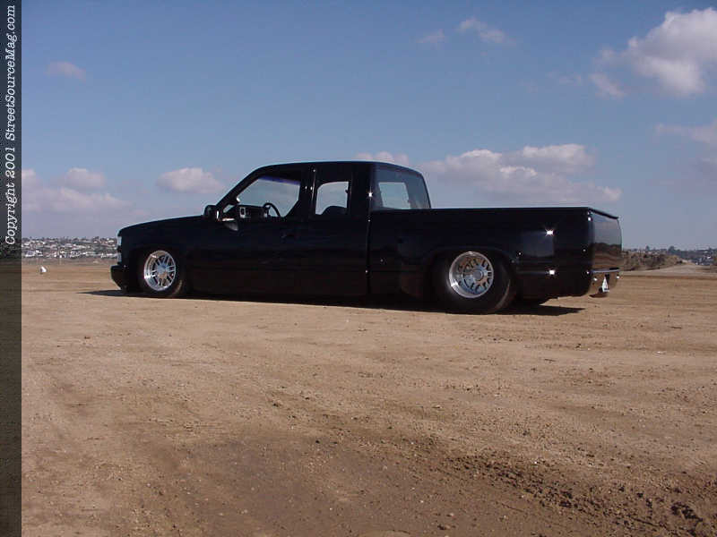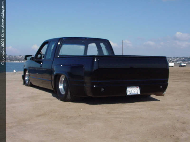Now finding the Silverado laying flat, it was time to change up the look of the body. Starting with the front, Soupy replaced the grille with a '95 grille fixed with an A&Z mesh insert. The stock headlights were ditched and replaced with APC projector lamps and a CATZ zeta system. Working his way to the rear would take some skilled work, which was left up to Larry "Bones" Llmas of Goleta, California. To start off his work at hand, Larry began by bolting up a custom front bumper from Sir Michaels. Next, Larry filled all the seams behind the cab.