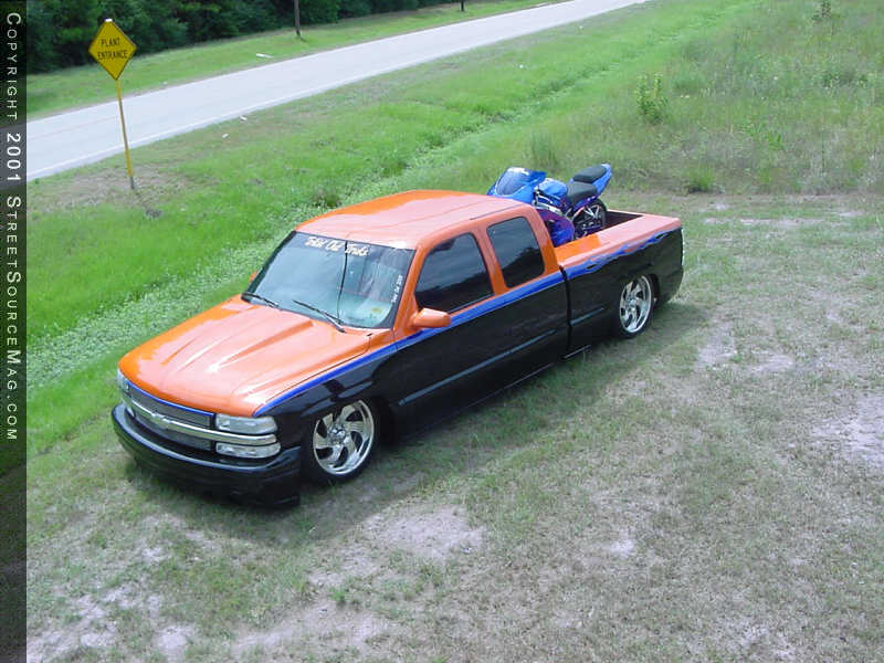 Krause's Collision began the paint process by first two-toning Chad's Chevy utilizing House Of Kolor black and orange, and then diving the two colors using House Of Kolor Cobalt blue.   Krause's Collision then used selected silver, also from House Of Kolor, and laid down a slick pinstriping scheme that truly brought out the flames that divide the two-tone color scheme. After laying down enough clear coat to make anyone jealous, Chad's Chevy was ready for its next stop on the customizing ladder.