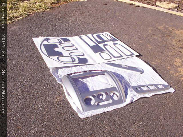 -Dula's Automotive Alterations (window tint) -Discount Dash (13 piece brushed aluminum dash kit) -AT Grills (upper and lower mesh grills)-CATZ (FET-USA) (ZETA-HID system)-APC (M3 Mirrors, carbon fiber hood, etc)-Vitek (Wires and braid)-Trenz (Billet Grills and rear view mirror coming soon)-MA Audio http://www.MAAudio.com-Emo Wheels www.EmoWheels.com-Toyo Tires www.ToyoTires.com-Nitrous Express www.NitrousExpress.com-Injen www.injen.com-Toucan Industries www.ToucanIndustries.com -Optima www.OptimaBatteries.com-Dula's Automotive Alterations -Discount Dash www.DiscountDash.com-AT Grills www.ATGrills.com-CATZ (FET-USA) www.FET-USA.com-APC www.4APC.net-Vitek www.VitekWires.com-Trenz www.Trenz.comOne of the easiest upgrades you can do to the interior of your vehicle is to install a dash kit. These kits come in everything from carbon fiber, aluminum finish and even several wood grain finishes. These kits are easy to install and can be done in your driveway or garage in about an hour. The kit I chose was a 13-piece brushed aluminum look kit. This kit came with 3 molded 3-D pieces as well as several flat pieces. The kit came with full instructions and a bottle of installation spray. This spray is used to spray on the underside of the piece before you install it. It keeps the tape from "tacking" on contact before the piece is set where it needs to be. You need to test fit all the pieces before they are installed to make sure they will fit and to familiarize you self with all the pieces. If a piece needs to be bent to make it fit and you have trouble bending it, you can use a hair dryer to heat the piece, which will allow it to bend easier. Thoroughly clean all surfaces to which the kit will be installed to remove any dirt, grease and especially any vinyl treatment products that will reduce the chance of the piece adhering. When you have the area cleaned and ready to install the piece, remove the backing off the 3M tape on the back of the dash kit piece. Then lightly work the piece from left to right. Then when you are happy with the placement of the piece, firmly go back over the piece to make sure it is securely installed. These pictures should show some of the steps needed to install the dash kit of your choice.Lay out the kit to inspect for damage and to get an idea of what pieces you are working with.