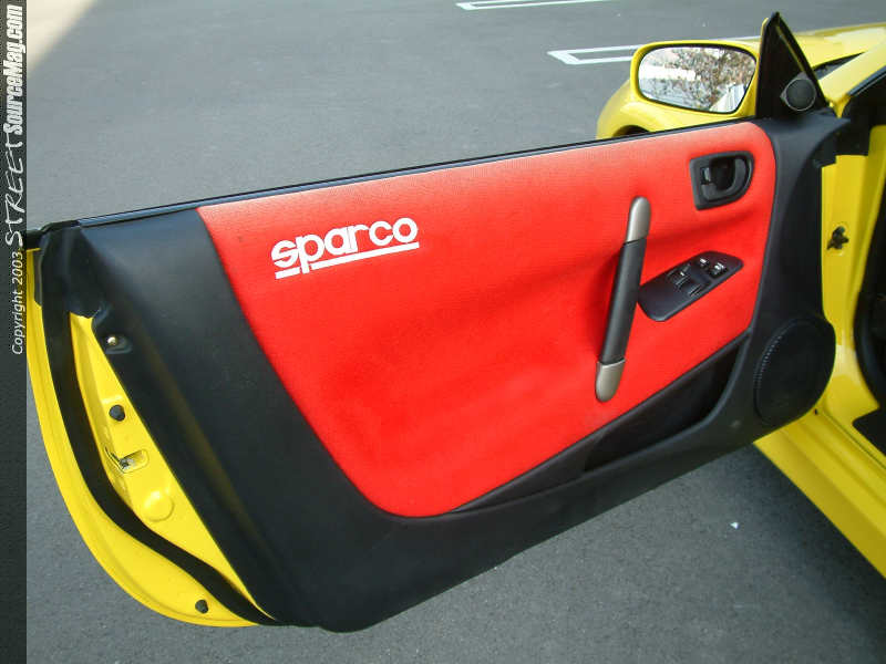 Next a set of reverse Indiglo gauges would be bolted and plugged in. Helping to accent the interior, John would install a set of Razo Pedals along with wrapping the center console. The stock seats would be torn out and replaced in favor of Sparco Torino seats with a custom-built rear miniature set to match.