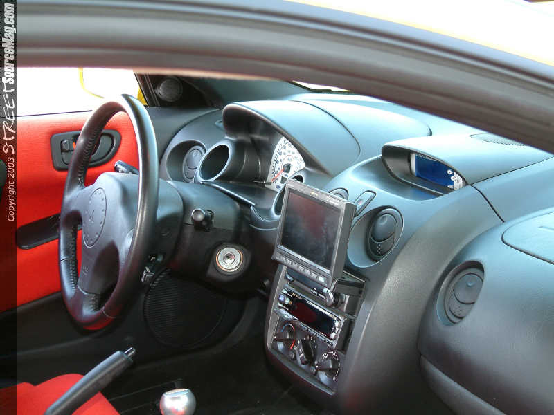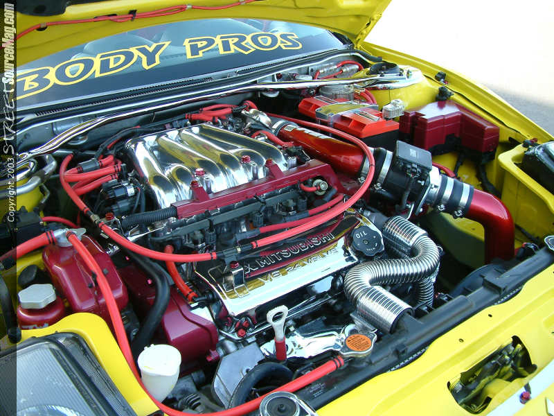 This all out custom bug that bit John was now forcing him to concentrate on the engine and surrounding areas. First off the valve cover would be chromed along with the battery tray and brackets. Next many plastic items would be painted and covered with silicon hoses provided by Hose Techniques. Bolted in the new chrome battery tray you will find a Holley Annihilation battery along with Vitek spark plug wires to help keep the current. To bring forth some more visual but with a little more purpose of power, John would install an AEM cold air intake and engine pulleys.  Knowing that more power was a must, the throttle body and intake manifold upper and lower plenum have been ported and polished. To help the engine breath John would then install a 5-Ziggen 150mm dual chrome cat back system. To help cool things down and keeping things in running order, a Radd Ho2 radiator and Apexi SAFC turbo timer would be installed. Feeling complete for the time being, John would only have a B&M Short throw shifter left to install to help get through the gears a little faster.