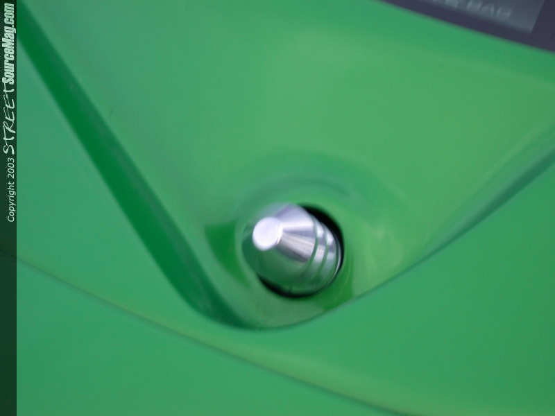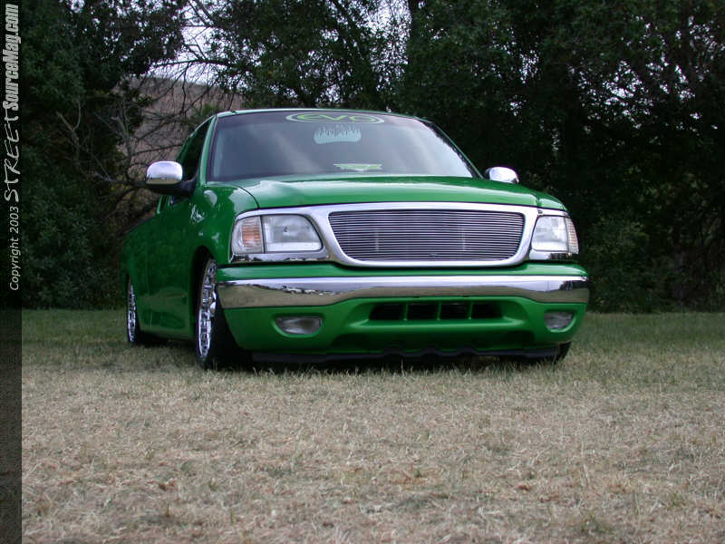 Beginning to work over the exterior confines, the front clip would be the first under the welder. The hood would be shaved of unnecessary items along with the front fenders. A 99 Trenz billet grille and a 1999 4x4 bumper would then accompany them.   Moving back CJ would shave the gas filler door and relocate it into the bed. Next, the stock taillights would be shaved and replaced with a set of High Tech taillights.