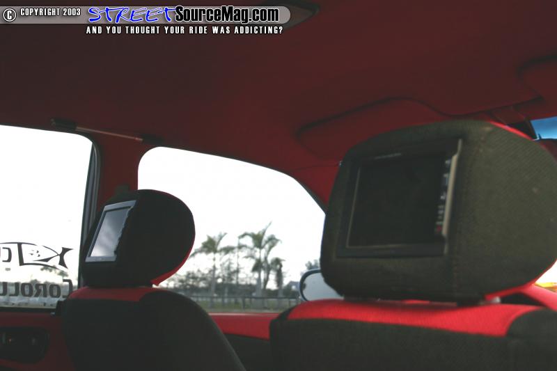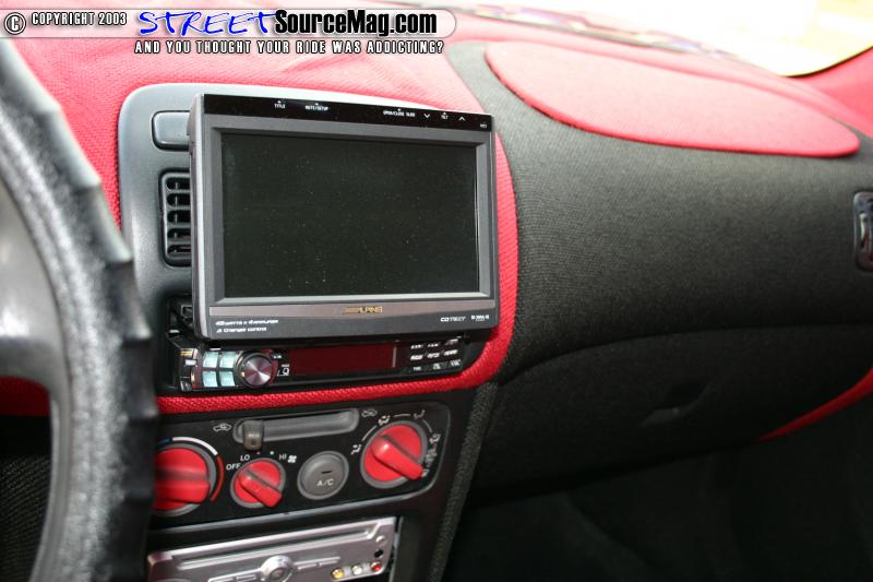 In dash you will find an Alpine CVA 1004 along with TV. TV monitors would then be installed into the headrests of both front seats. A 4-channel EQ would be installed into the system to control the sound quality while a set of Alpine 5 ½'s would be installed for mids. 12 inch Sony Explode subs would be installed for bass while an Alpine 600 amplifier pushed volume through out. Jonathan handled the wiring needs himself.