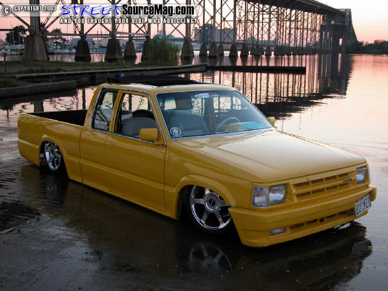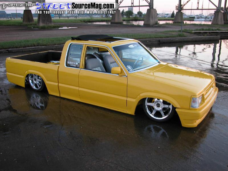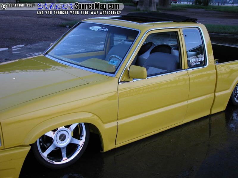 Daniel is not new to the custom scene; he is not new to the aches and pains of dealing with others to build a ride. In fact, in the 10 years of being involved in this sport he has only had to hide a few bodies and deport a few helpers to finally build the trailer queen of his dreams. Daniel has owned everything from a Honda Accord wagon on hydraulics to an S-10 to a 64 Impala. Daniel loves fiddle faddle and long walks past the road kill as he watches other fellow minitrucker's honk and wave. And oh yea, Daniel has a bad ass truck. About 5 years ago Daniel started on his 91' Mazda B2200 by turning a heap into a reality. Daniel first traveled to the big city of Dallas, Texas to seek the help of Underground Customs. Like the pretty dames Daniel had seen in all the Hustler magazines of his cousins, Daniel wanted a smooth fully shaved ride.