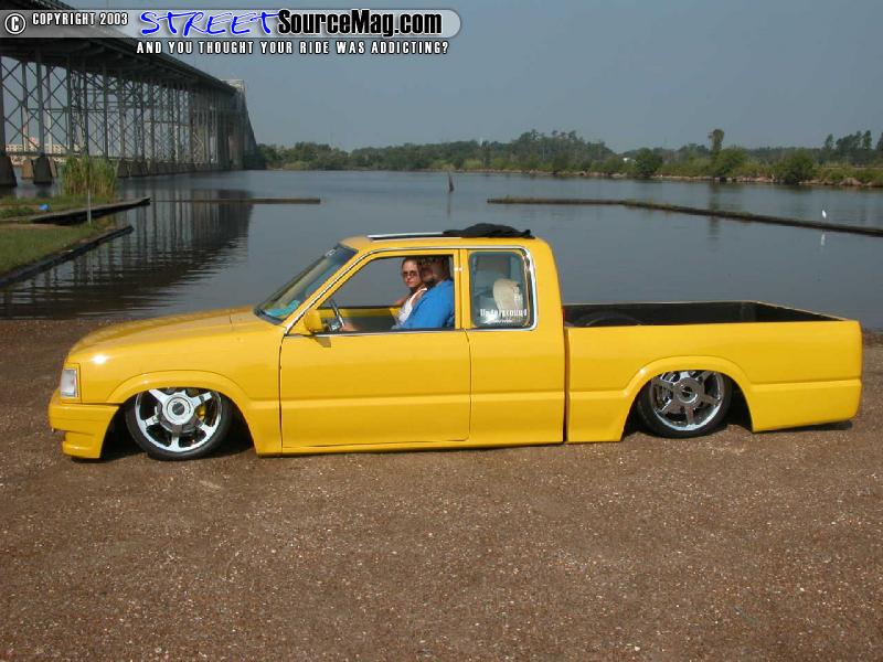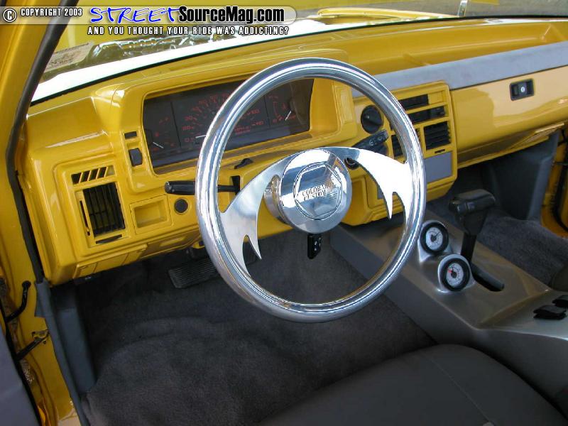 Continuing the work from the exterior, Daniel turned his attention to the interior of the truck. First, he installed a custom black sliding ragtop for the days he likes to feel the wind in his air.   Then, he carried the Chrome Yellow paint inside and slathered the dash and accent pieces to match. He swapped the stock seat material for gray vinyl and suede and also smoothed and covered the new door panels to match.
