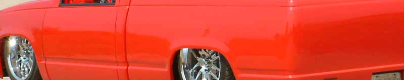 For those of you that know Chas Nichols of Mesquite, TX this may not come as a shock to you but this cat is crazy! With his smart-ass comments and spastic ways you can help but like him. Chas used this to his advantage when it came to building his show quality ride. Back in May of 2001 Chas would pick up a full custom yellow 1996 GMC full-size and bring it home to be rebuilt making it his own creation. While being sponsored by Visa/MasterCard the vision that came upon him would come out in true form in as little as 18 months. Having followed the custom scene through various magazines and being involved in the scene since 1997, Chas would know what was needed to build a show winner along with the idea of making the girls say "damn who's dat pimp" as he rolled around town.