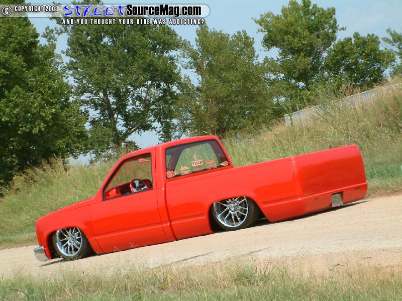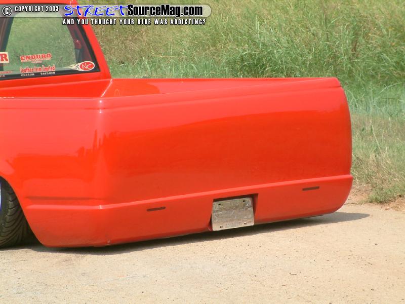 The gas filler door would also be shaved and relocated into the bed, which had been completely sheet metaled, molded and smoothed to perfection. Finishing off the body mods, the tailgate and roll pan in the rear would be molded to the bed while the wiper cowl and antenna would be shaved. Insane Designs and Kreative Colors of Texas would redo a lot of the bodywork.