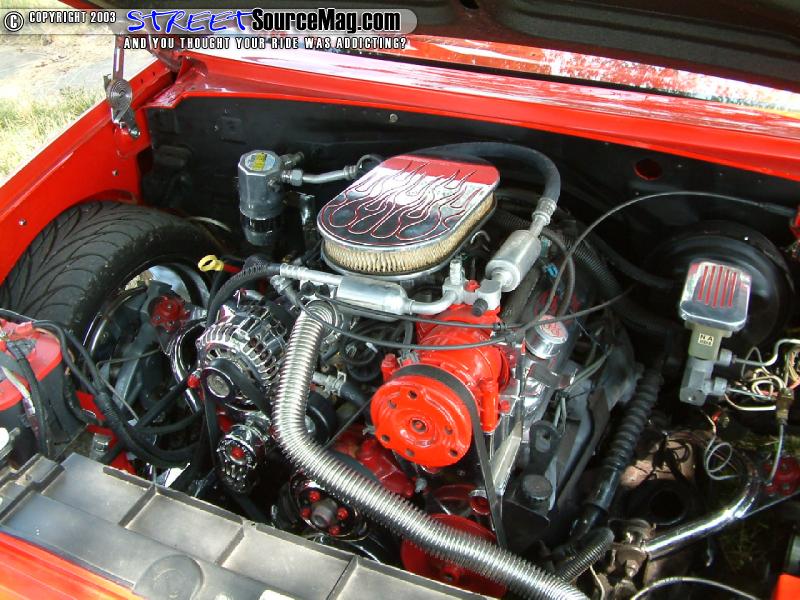 With one item untouched, Chas needed to dig into the stock 305 and give it some good eye candy. Chas would find the 305 already equipped with an upgraded crankshaft and new rods. The water pump would be powder coated along with having the alternator and engine pulley's chrome plated. An electric cooling fan would be installed to help cool things down. With a leaking exhaust, Chas would make sure his Flowmaster muffler would still keep his 305 sounding mean.