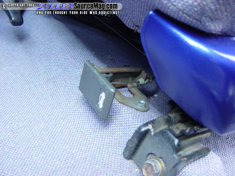 Now that the outside was something that would catch everyone's eye, it was time to completely redo the interior. The factory seat was taken out in favor of some out of a Honda Prelude, but not before they were reshaped and rewrapped in lilac tweed and gray all ante.   Bubba even had the Pebble Pusher logo stitched into the headrest. The door panels were shaved of all extrusions (arm rests, window cranks, door handles) to smooth it out.