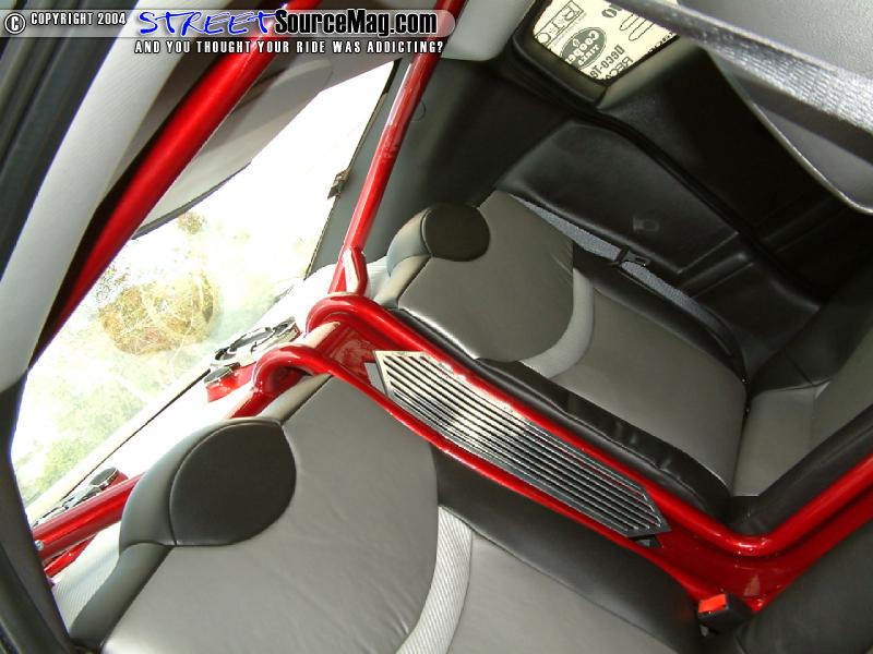 Continuing inside Kurt would install a one off custom Roll bar made from 1-1/2inch mild steel and powder coated candy red. The new roll cage would be used to help house some stereo components. To help play the music of choice Kurt would install a Rockford Fosgate CD player while a Lightning Audio EQ helps adjust the sound to perfection.
