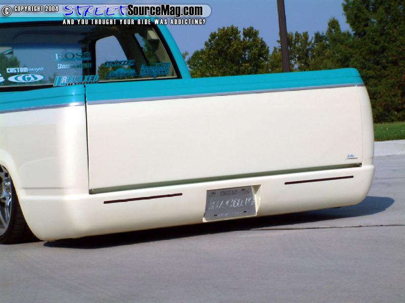 Working back Mitch would then have the door handles shaved along with the gas filler door and the gas filler moved into the bed floor. The taillights would then be shaved and Hi-Tech flush mount LED’s installed. There wouldn’t be anything left untouched on the body with everything being molded or shaved through out. Mitch with the help from Woody of Tyler, TX would handle all of the exterior modifications.