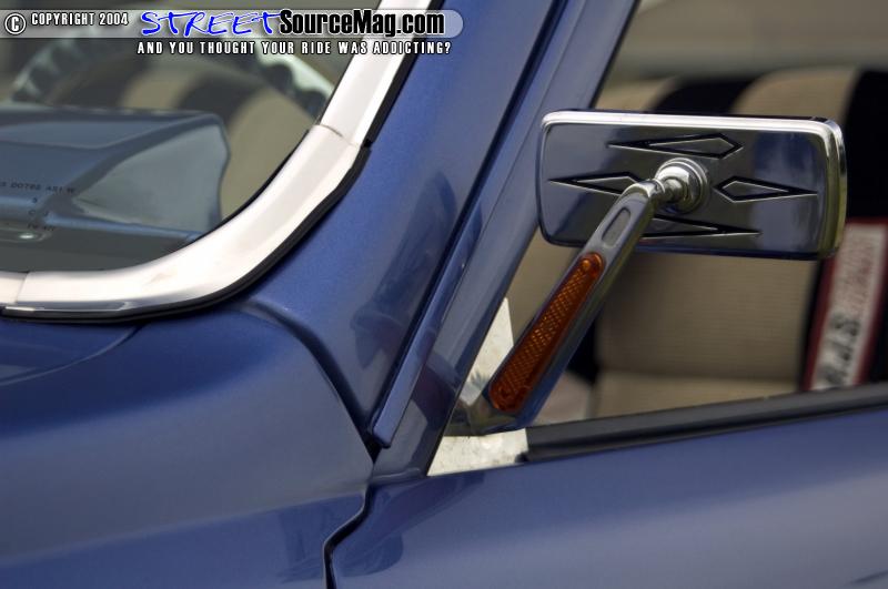 Finishing off the bed, a rear combo skin would be welded in along with a set of 4wd front fenders grafted to the bedsides. With the taillights shaved a set of frenched in LED trailer taillight would be needed. Keeping with the theme of legal necessities, a popup license box would be installed for when on the road. Finishing things off a 40x30 ragtop would be installed along with a Harley billet mirror with blinker.