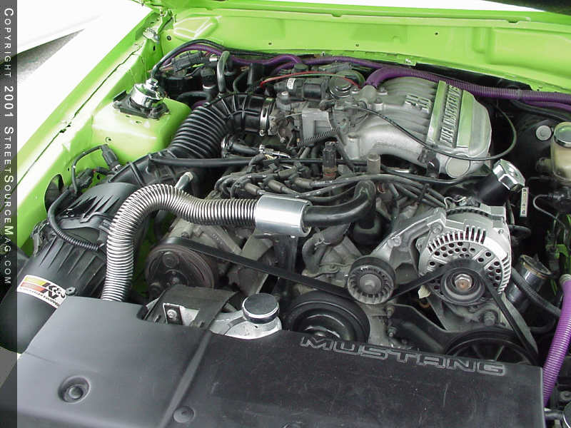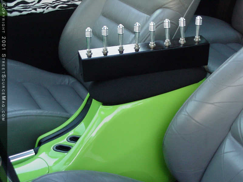 Billet & Acrylic Accessories in Vero Beach, Florida created many of the billet accents that can be found inside and out on Jay's Mustang. They custom made many of the billet parts and pieces found on Jay's Mustang, including the "Ford" billet gas cap.  For listening pleasures, Jay dropped his Mustang off at HiWay Hifi in Melbourne, Florida for a custom stereo install that not only sounds good, but also compliments the overall appearance of his ride. In the trunk, a Plexiglas box houses two JL Audio 10w6's, which are powered by a Rockford Fosgate 200 IX amp.