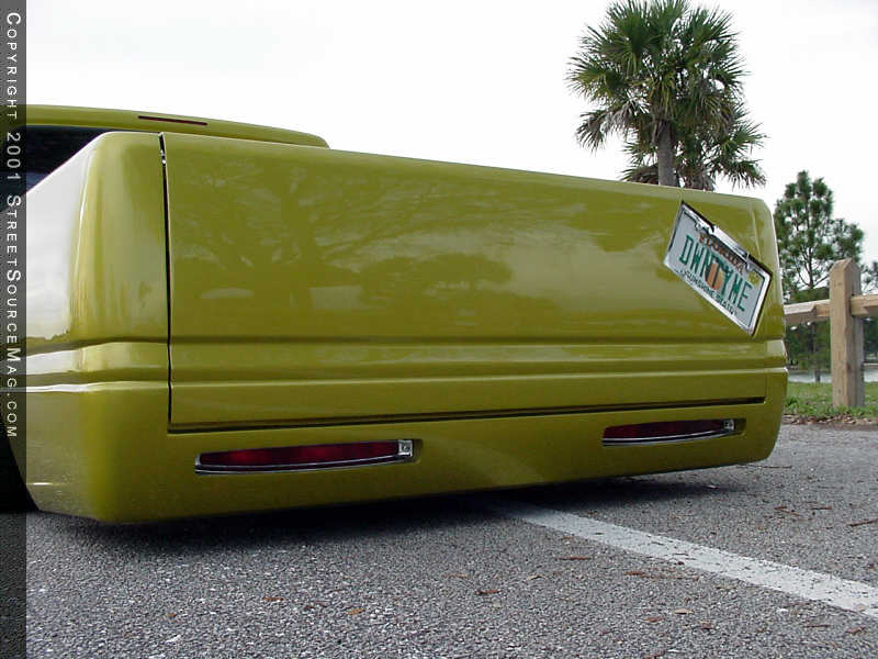 Rolling hard and under control, Bruce knew that his truck still needed to go that extra mile and really blow the show scene away with its rebirth. With that in mind, Bruce turned again to AON Customs for a host of body mod's that would make anyone jealous. First, AON shaved the normal items including the door handles, body seam, and tailgate handle. A custom cut license plate box was installed into the tailgate as well. The taillights were shaved and a steel rollpan now takes the place of the factory bumper, but not before custom horizontal Caddy taillights were installed first.