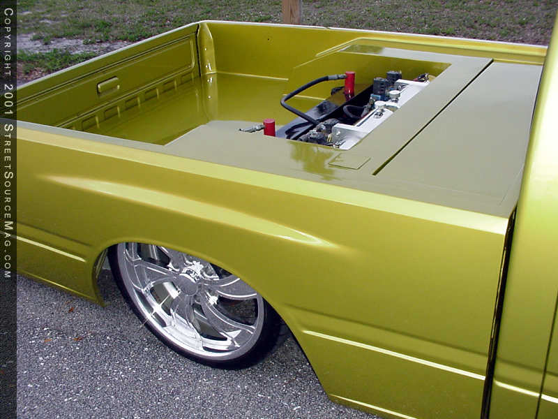 Bruce contacted the crew at Intro for their opinion on a set of rollers that would only compliment all of the other hard work involved. When it was all said and done, Bruce chose Intro Twisted Vista 6 in the 19x8" fashion and wrapped them in Nitto NT 555 225-35-19 rubber. Under the hood, Bruce has relatively left things pretty close to stock, but has removed the emissions system and added a few painted items. Bruce also had a better breathing Dynomax muffler installed, giving his truck a throaty sound. It's hard to believe what Bruce's truck used to look like and what it looks like today. Not an inch of his creation has gone untouched. The show circuit can only thank the Lord that Bruce is here today to have brought back such a smooth creation to share with the world. Bruce would like to thank the whole crew at AON Customs, including Craig, Jason, Trent and his friend Vinnie for all of their hard work returning his Isuzu to the show scene in such a short time frame.
