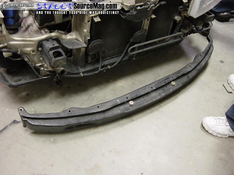 Now that all 5 bolts are removed on each headlight, the front crush panel will need to be removed. There are two 6mm Allen bolts under each headlight that will need to be removed to allow the crush panel to come off.
