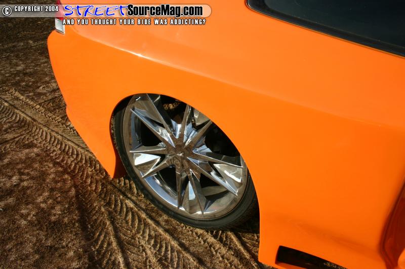 The suspension on Phil’s prelude consists of cylinders all the way around. ½” lines and SMC valves provide the lifting and dropping capabilities while 2 firestone compressors and 2 2 ½ gallon thanks keep it full of air. To get it to lay like he wanted the strut towers where raised and it was tubbed. The car is rolling on a set of 20” Platinum Snyper wheels wrapped in 25 series Kumho tires.
