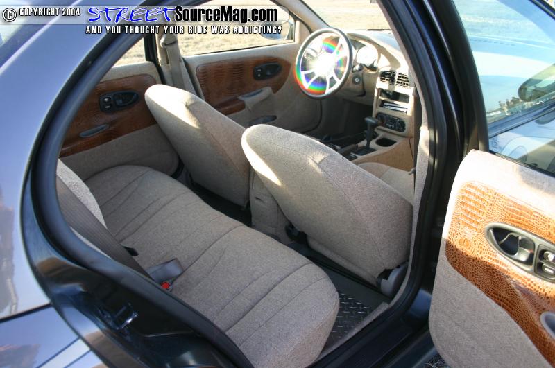 Moving on to his interior Cody had Mike Hicks at Dixie Rod and Customs tweed almost basically the whole interior. The door panels where covered in oak tweed along with gator skink inserts. Most of the other panels in the Saturn were also covered with oak tweed including the dash.