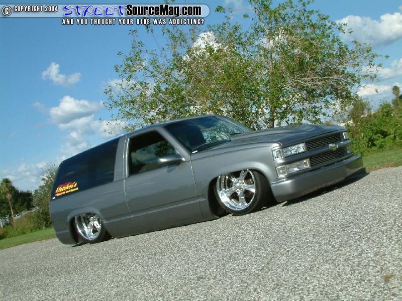 The crew at Fletchers would then custom modify the stock control arms ensuring clearance all around. Ensuring enough room under the beast, a 20-gallon aluminum gas tank would take the place of the stock bulky tank adding more room for low. A set of Monroe shocks and Slam Specialties RS72 bags would then be placed at all 4 corners for adjustability. For a cleaner look stainless brake lines would then be ran through out.