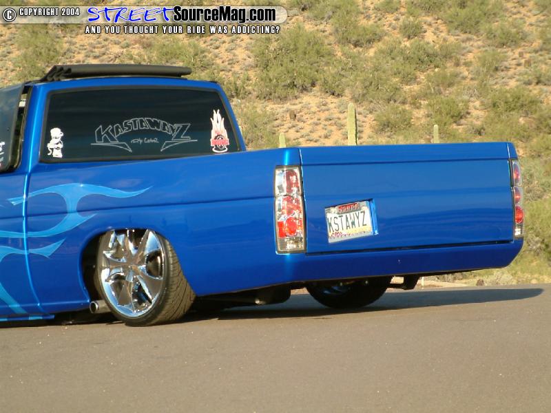 Continuing the body mods, the 3rd brake light, tailgate handle, emblems, squirters and cowl would all be shaved while the rear license plate would be frenched into place. Finishing off the exterior mods Jerry would install a 35x42 electric sliding rag.