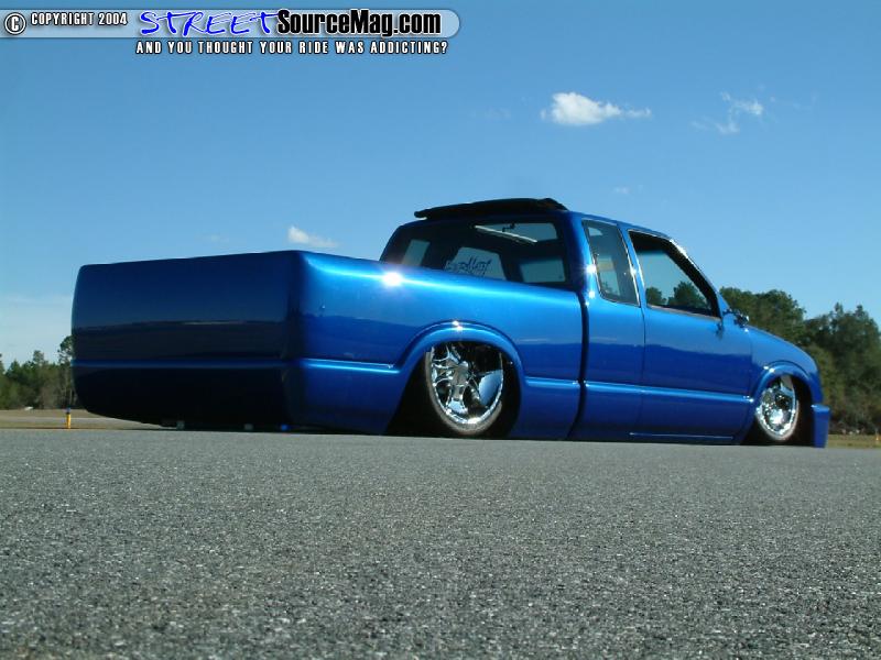 Wanting to get the S10 down on the ground Gil would begin the process of applying a 3 ½ inch body drop to his ride. With a custom 2 x 3 x 3/16” frame constructed under the body Gil would be well on his way. In the rear Gil would install a custom 4-link while the front would house a set of 2” DJM spindles and ART control arms. With the ability for the body to lay on the ground Gil would then install 4 Firestone 2600 bags with Parker valves for adjustability.