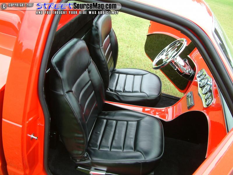Having the bodywork complete would leave Steve with the interior confines needing the same attention. With the need to keep up with the exterior the dash would be hand made out of steel and painted along with door panels. Keeping up with the new panels Shane would install black leather seats along with painting the remainder of the interior panels.