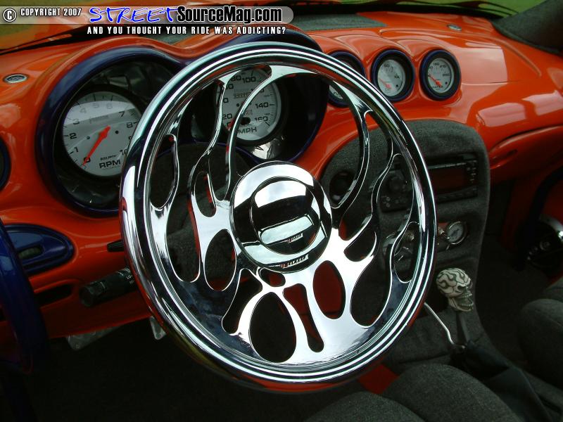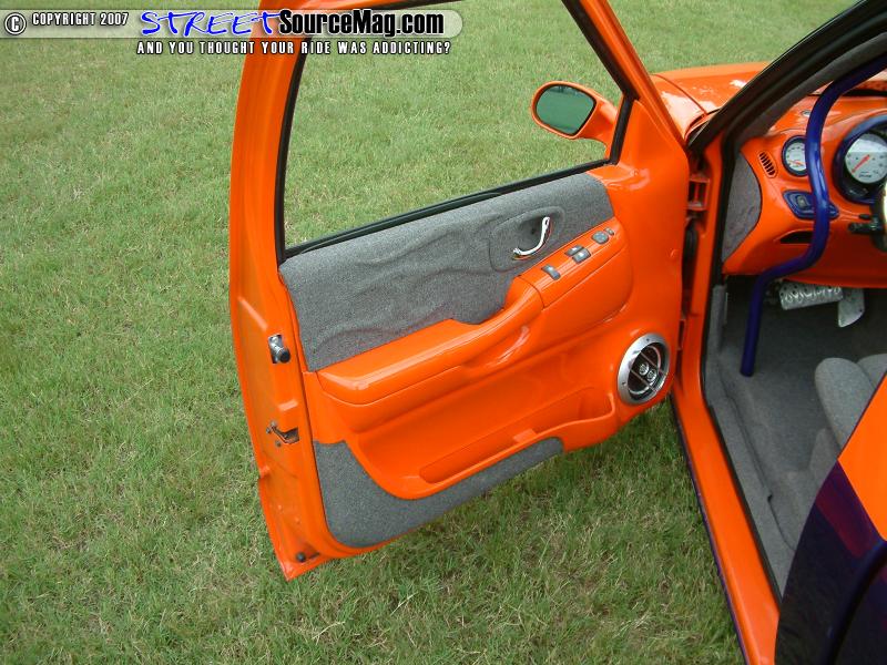 The interior would be no simple task as the dash would be replaced with a smoothed and painted '00 dash along with door panels to match. The headliner would then be wrapped in tweed with flamed graphics along with other interior panels wrapped to match.