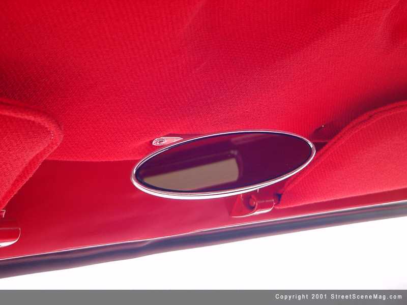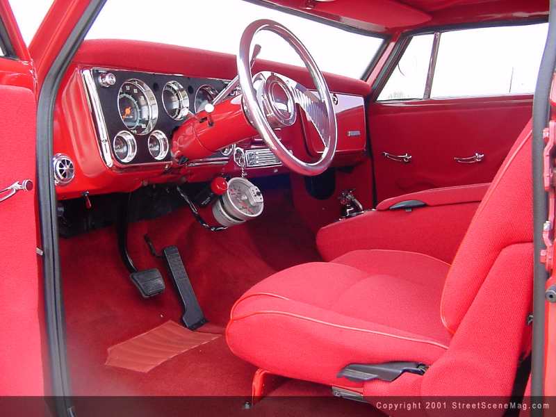 The next step of course, would be to have the seats recovered. The decision that the black interior would be to hot for the summer, the choice was to go with red tweed in it's place. In reworking the interior, Jim managed to not leave out any panel while working the door panels, dash and headliner.   To help bring a much-added custom look to the interior, Jim bolted up all of the billet stuff made for this truck along with an Autometer monster tachometer.