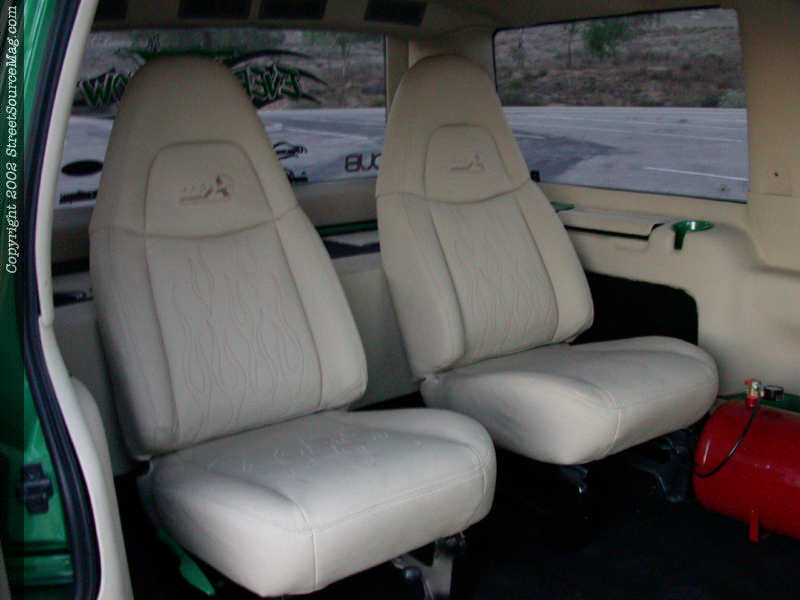 With the exterior and suspension fitting his needs, Ernest would next work the interior and stereo. Starting with the dash, a nice coat of paint would be what Ernest was looking for along with other interior panels receiving the same treatment.  The rear seats would be ditched for a set of buckets to match the front and all 4 would be covered in cream-colored leather material.