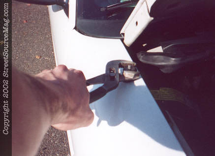Step 4 Now get on your back and remove the eleven 13mm bolts holding the inner fender to the outer fender and firewall. Don't forget the nut that holds the battery clamp in position, its part of the inner fender as well. I opted to remove my battery afterwards, but you can just support it so it doesn't bend it's tray. Ta-da...now you have a big hole in your engine compartment. Step 5 Ok, back to the problem at hand. Begin the removal of your ugly stock antenna by unscrewing it off it's base, then use a suitable pair of pliers to remove the retaining nut off the fender. We're not going to reuse this so we're not too worried if it gets damaged. Step 6 Next take the 2 phillips head screws out of the fender that support the antenna base.