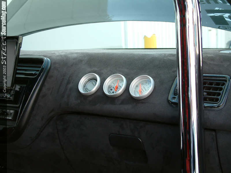 Not wanting to feel left out Daniel knew the interior would have to be as wild as the exterior so the Sparco SRD front seats, dash, door panels, headliner and many other panels were wrapped in Black suede leather by Apollo Interiors of Alhambra, CA.