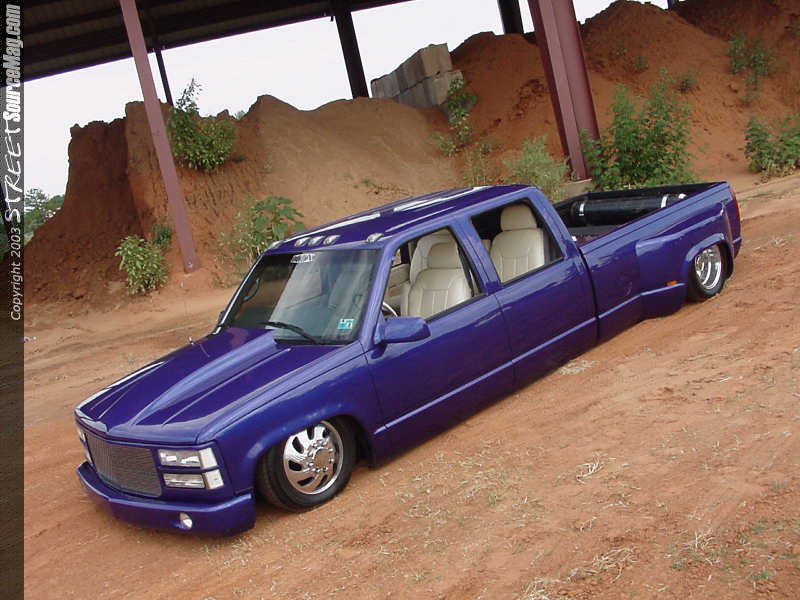 Moving back, the door handles would be shaved on all 4 doors along with welding in a Chassis Tech roll pan and molding in the tailgate. A hard shell bed cover would be installed to finish things off out back.   With the body work complete and the prep work done, the Dually was taken to Norman Body works of Norman, OK. While in their hands, they would lay down the Acura Supersonic blue paint.