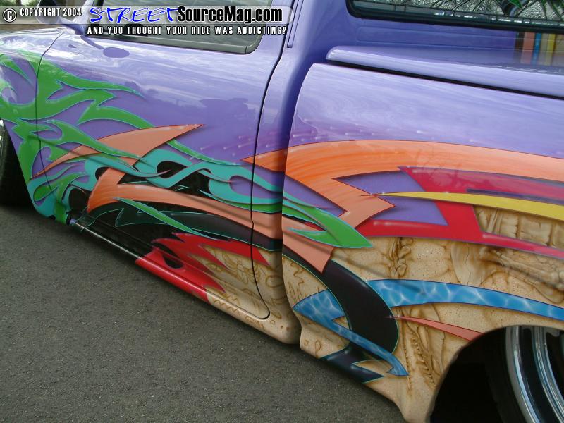 Utilizing all PPG paints, the graphics would run under the truck, inside the bed, inside the bedsides, between the bed and cab, inside the front fenders, and under the hood.
