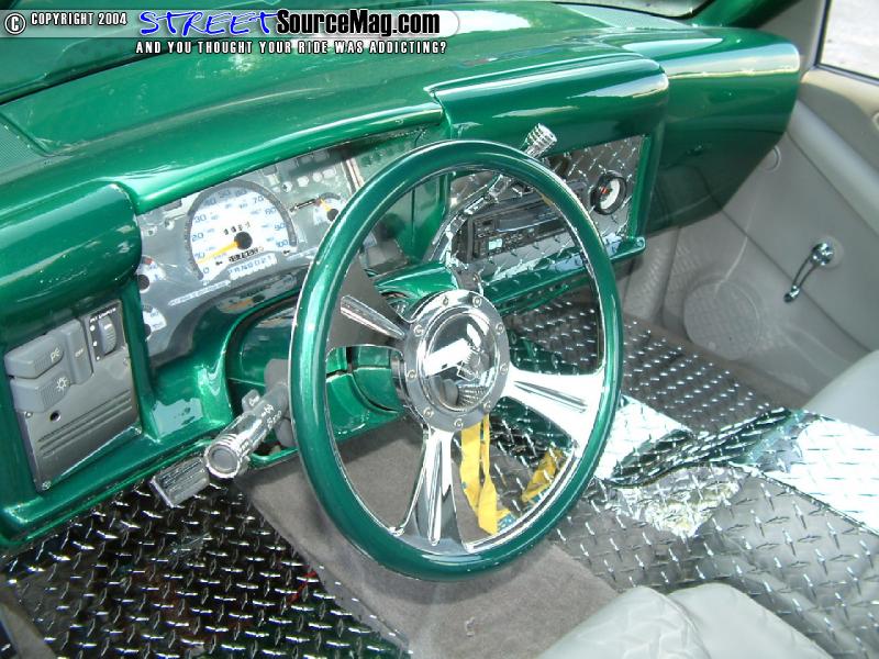 All aluminum diamond plate center console, floor mats and back wall would then be handled while a Billet Specialties steering wheel helps tie things together. The seats, doors and headliner would all be stitched by stretch of Sew Custom Interiors of Lebonon, TN.