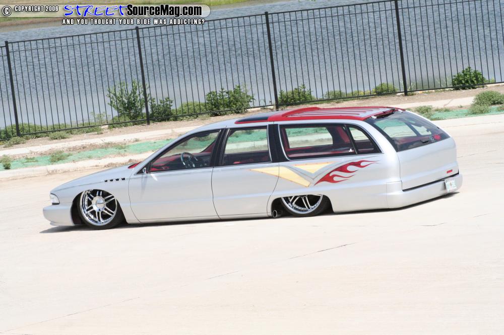 The paint was laid down after all of the body mods were completed as a solid base coat. After the base was done the only part of the build not performed by Ryan was next, the airbrush work. Wood grain was added by Chris Greene to keep the original Roadmaster feel, also added in were the Buick logo and the name “Roadmaster” on both sides mirrored to perfection.