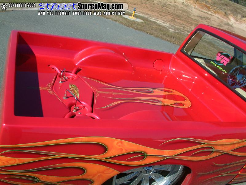 The rear of the truck would then be set up with flush mounted taillights in the shape of flames created from red lens. The license plate would be flush mounted behind a piece of clear lens to finish things off.