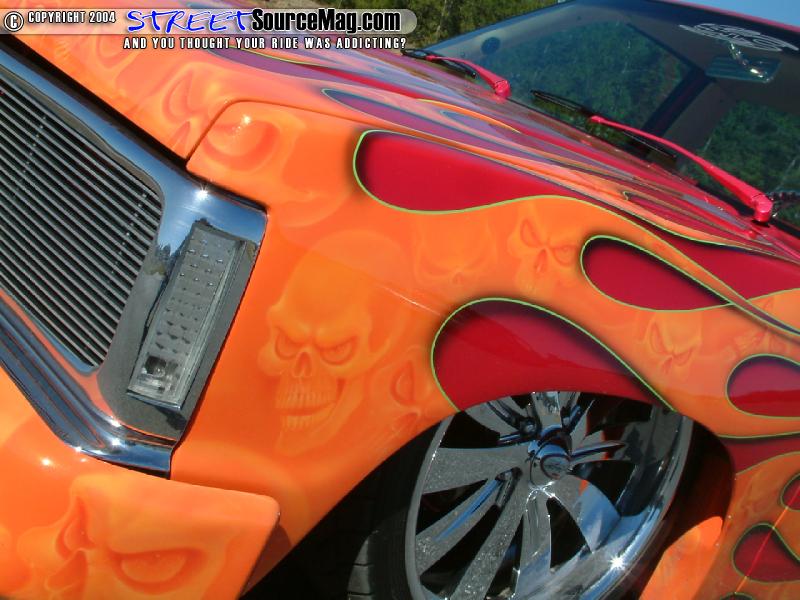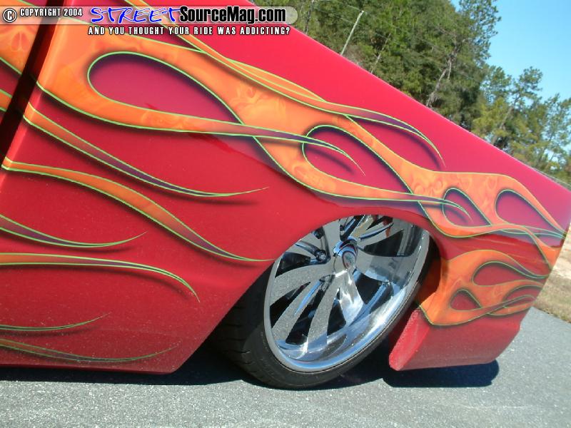 Not yet complete until under the hood had been handled Jennifer would focus her attention to the proper location. The motor, tranny, drive shaft, molded rear-end, gas tank, fan, and fan shroud would all be painted HOK pink. The rear-end would then be sharpened up with a chrome cover while the motor would house chrome valve covers, alternator-fan-nose cover, all pulleys, brackets, power steering pump, power steering cap, radiator cap, brake master and booster, brake lines, fuel lines, air cleaner, a/c cover.