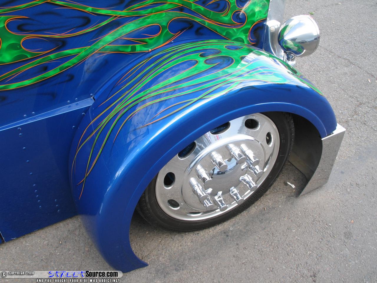 After buying into the family trucking business at 25, Botelho began building custom big rigs on the side, but never getting the chance to build the dream that he so long sought after. “I had been building custom rigs for myself mostly,” Botelho says. “However, someone would usually come along and buy them as soon as they were finished or sometimes even before I would get a chance to finish it.”However, in late 2006, Botelho was asked to participate in the Big Rig Build-Off at the Mid-America Trucking show in Louisville, Kentucky, a prestigious event in the big rig world. The rules are simple enough: each builder has 90 days to complete their build and it must be able to drive into the show under its own power. If the 90 day deadline wasn’t short enough, at the time of his invitation, Botelho was already behind seven days, leaving him with just 83 days to create this beast. Knowing it was time to turn his dream into reality, Botelho began making arrangements to begin the build.Finally being able to use all of the parts that he been hoarding all of those years, Botelho blew the dust off of the rolled over cab from back when he was a teenager and purchased a burnt up 1998 Peterbilt for the chassis and suspension. Deciding to build the frame at his friend’s shop, the truck was moved an hour away to John Chamoro’s shop, Solo Customs. It was there that Botelho and three friends worked tirelessly for fifty days to perfect the chassis and suspension, boxing and smoothing everything. Due to the very nature of the project, nearly everything had to be handmade, from the four link bushings to the rear fenders. The frame was notched over each axle to accommodate for the drop while six 400 psi Slam Specialties air bags provide the lift. Beyond the engine compressor for the air brakes, four Air Zenith compressors and six stainless air tanks provide the air management for this semi. No custom big rig would be complete without some giant rolling attire and thanks to his cousin, who happens to be a machinist, (6) 24.5 Alcoa’s were machined down to 24”, allowing them to be wrapped in Pirelli 305/35/ZR24s.
