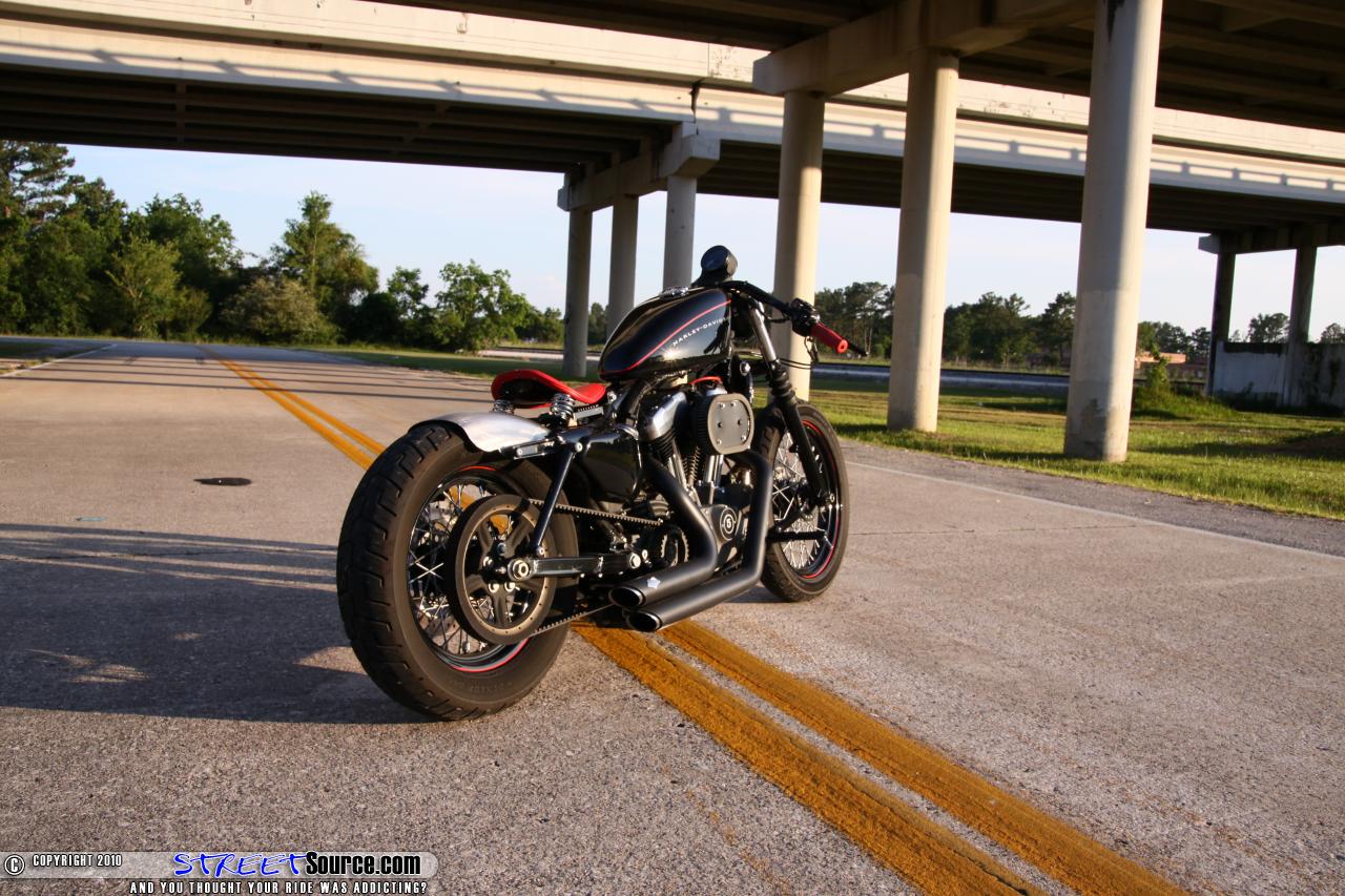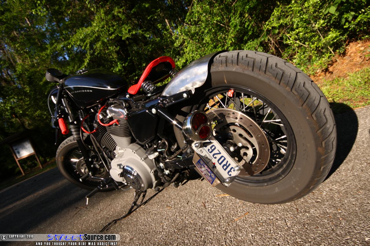 Now with the bike running good and looking better than Harley made it, he had to get it out there and ride. Since the speedo only goes to 120 he had to call in a favor, and got a friend to radar him and was clocked at 134mph. Not bad for a 550lb bike with a few less hp than a mazda b-series. Finally after all this was said and done Steven was at a stopping point on his bike and could get back to his true passion, his trucks. He poured his heart and soul into his purple 95 nissan hardbody that was totaled. So knowing his new froniter would be a slow build this Harley fulfilled the void for the build process. So the bike is done now, and the frontier is currently torn apart being layed out, its time for him to sink all his time and money :) into the truck so it can be filling the pages of the magazine soon enough.