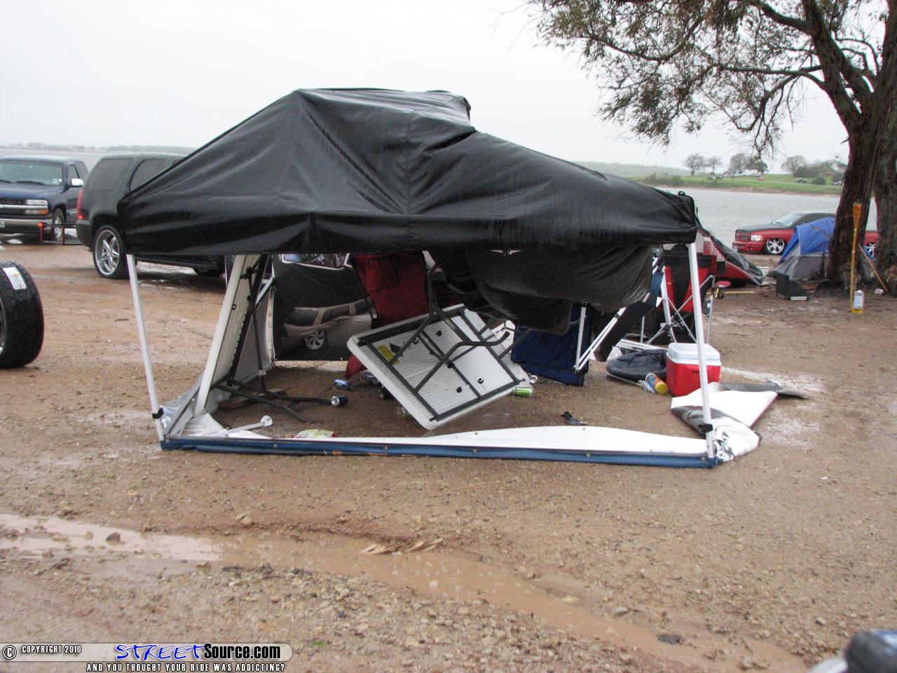 I have been to Tex Mex for several years now and always have a good time. I got in Friday morning and the show was great fun. The guys at KIK kept feeding me Jungle Juice (assholes). Because of the Jungle Juice, I almost fell face first into the fire at the sunset camp. Funny part is, I don’t remember almost falling. I remember slipping a little. But I guess everything looks scary when your drunk and it probably was. I had a great time Friday night!But…It seems that some of the best shows in the scene are not immune to old Mother Nature. We woke up Saturday morning at it wasn’t too bad. Then all hell broke loose. Crazy gusts of wind and POORing rain turned the show grounds into what looked like a war zone. Minitrucks + nasty mud = lots of trucks stuck. I managed to get around and take a few pictures for you guys. I really hope you appreciate it cause I bout froze off one of my huts in the cold. And I am from Idaho where it gets -25 degrees. That wind made it a cold day. Nobody knows if they are going to throw this show again, but I hope they do. Very fun and i recommend going!By Kris - aka SSM-Webmaster