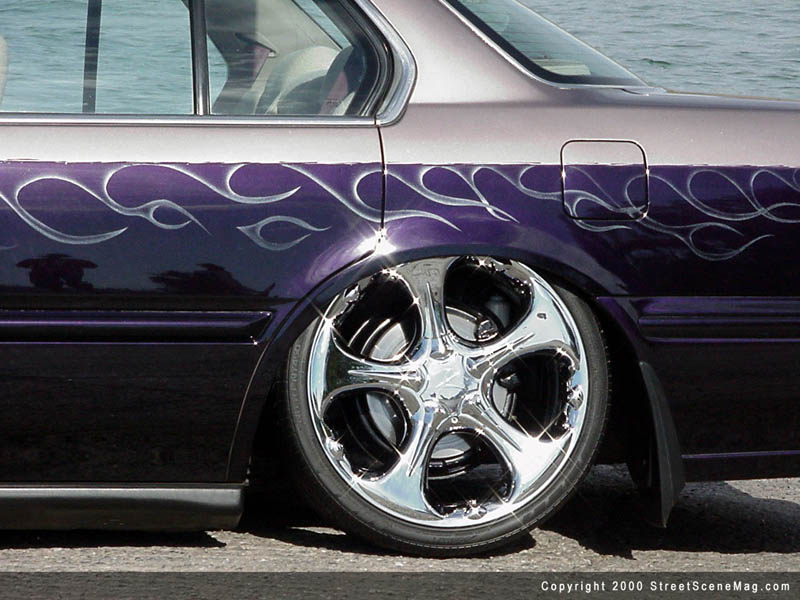 Picking up a Honda four-door Accord for about $6500 back in 97, it was supposed to be Misty’s daily driver, but that idea was short lived. After time, their relationship grew to be serious and Troy just happened to adopt the car and went to town with body mods. Although the build-up of their bucket only took about a year, Troy swears that it will never be complete. Even after putting over 10k more to into it, that didn't bother him because he builds vehicles for the fun of hitting all the shows he can and traveling. Now that he had adopted a new project, it was time to get busy with it. One of the first things to do would have to be the ride height where he wanted it. In the rear of the Accord, Troy custom-built brackets to mount a set of Firestone airbags along with a set of Monroe shocks. Once the rear was sitting down, it was time to get the front level with the rear. In order to do this Troy had to custom build new brackets for the Firestone Airbags and Monroe shocks. Now that the accord was lying flat, it needed some wheels to set it off. 18” KMC Gnomes wrapped in 215/35/ZR 18’s to tuck in the wheel wells were used for this. And may I say it was all in good taste. Riding smooth and low, it was time to start working the body to give it a smooth appearance. The first thing that had to go were the door handles.