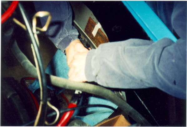After the interior is all removed, the next thing to do is the frame horns. The frame horns are marked and cut off with the bumper & valance still attached. here, you can see eric using a reciprocating saw to make some really neat cuts, that won't need any grinding before welding. A plasma cutter could be used, but wouldn't do the job as cleanly.