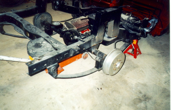 To get started, the first thing to do is pull the bed off and get the truck up on a good set of jack stands. Pull off the wheels and begin taking a couple of measurements for later reference.